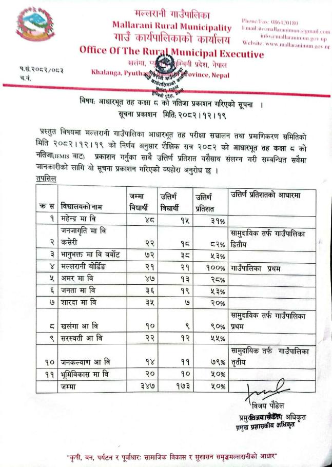 आधारभूत तह कक्षा ८ को नतिजा प्रकाशन सम्बन्धी सूचना ।