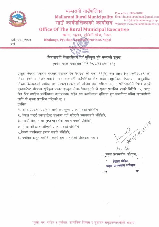 » विद्यालयको लेखापरीक्षण गर्न सूचिकृत हुने सम्बन्धी सूचना ।